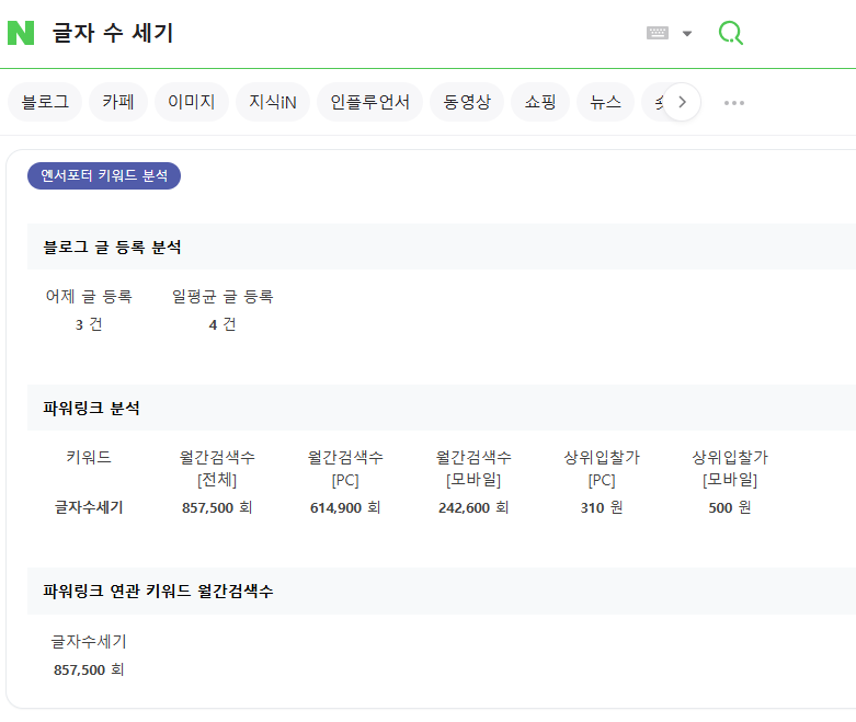 이 방법은 네이버 카페, 포스트에도 동일하게 적용되며, 결과값은 한글 기준으로 계산됩니다.