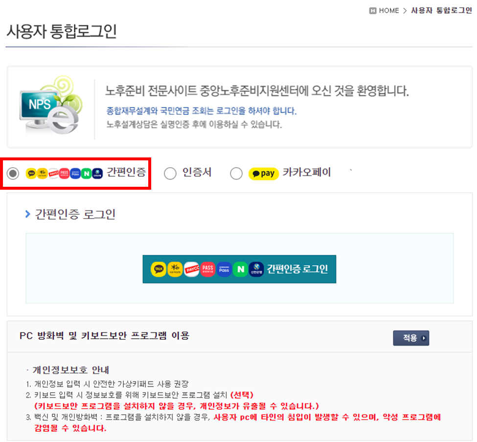 저는 카카오 톡 인증이 편해서 간편 인증을 카카오톡으로 합니다.