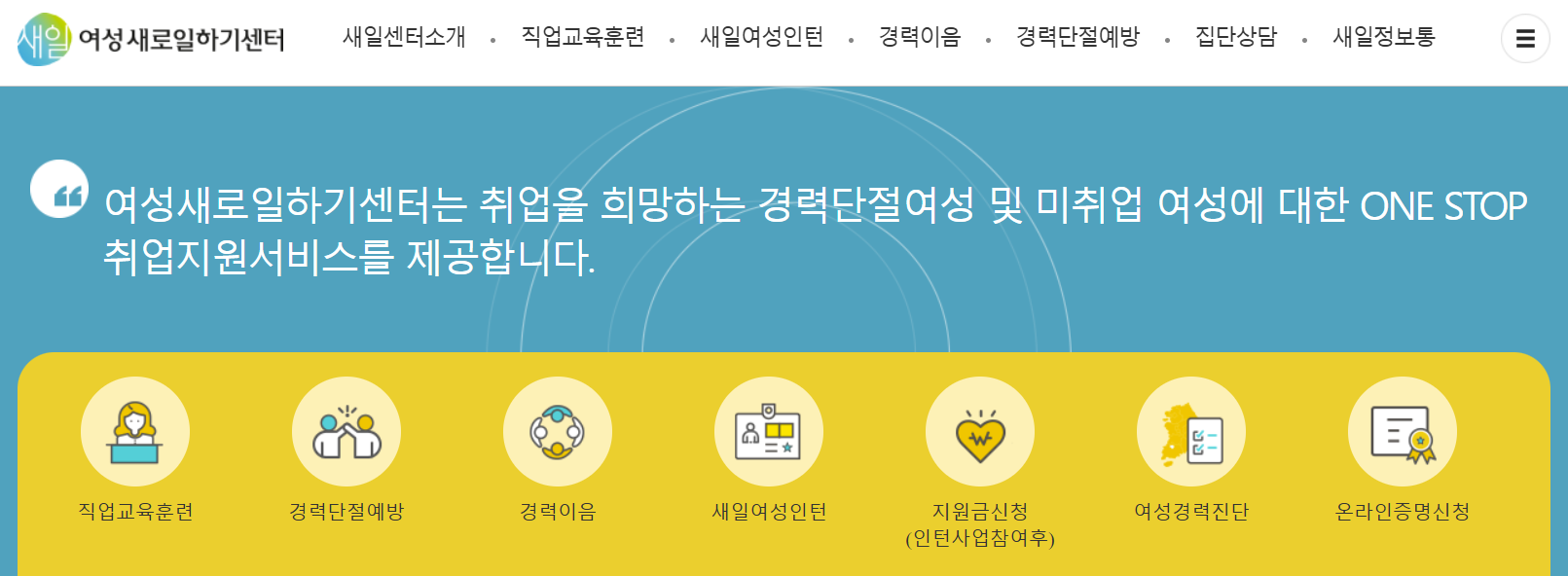 - 여성가족부에서 운영하는 여성새로일하기센터를 적극 활용하세요.