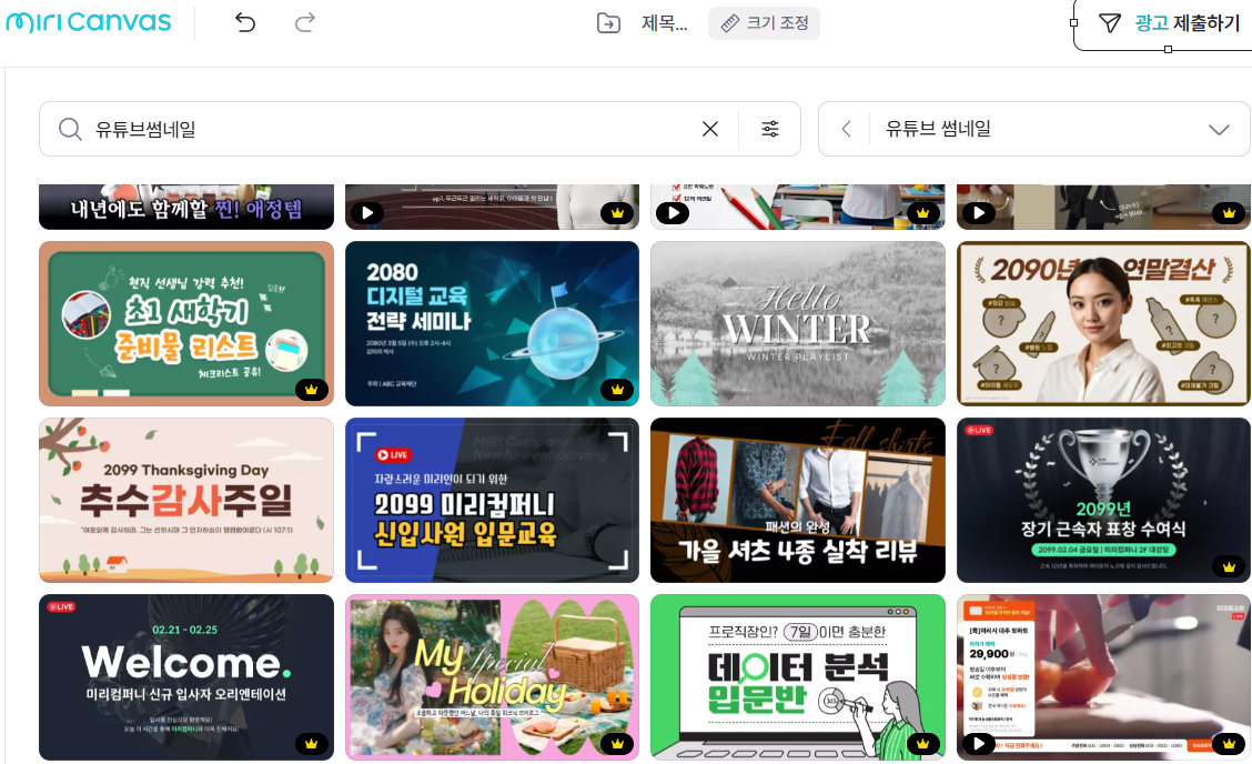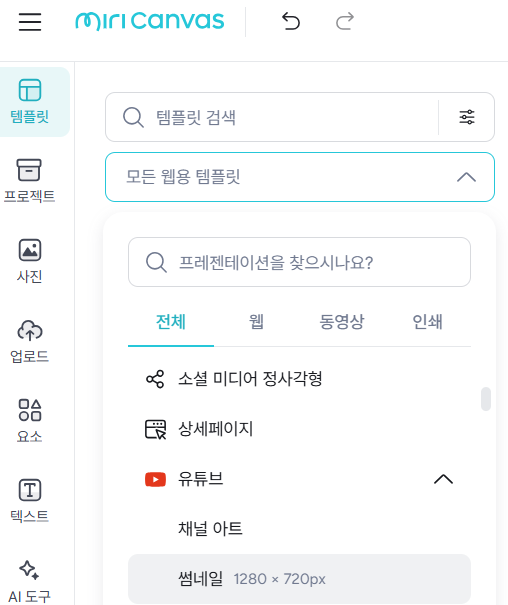 썸네일 제작 도구를 사용할 때, 사이즈를 미리 설정하면 훨씬 편리해요.