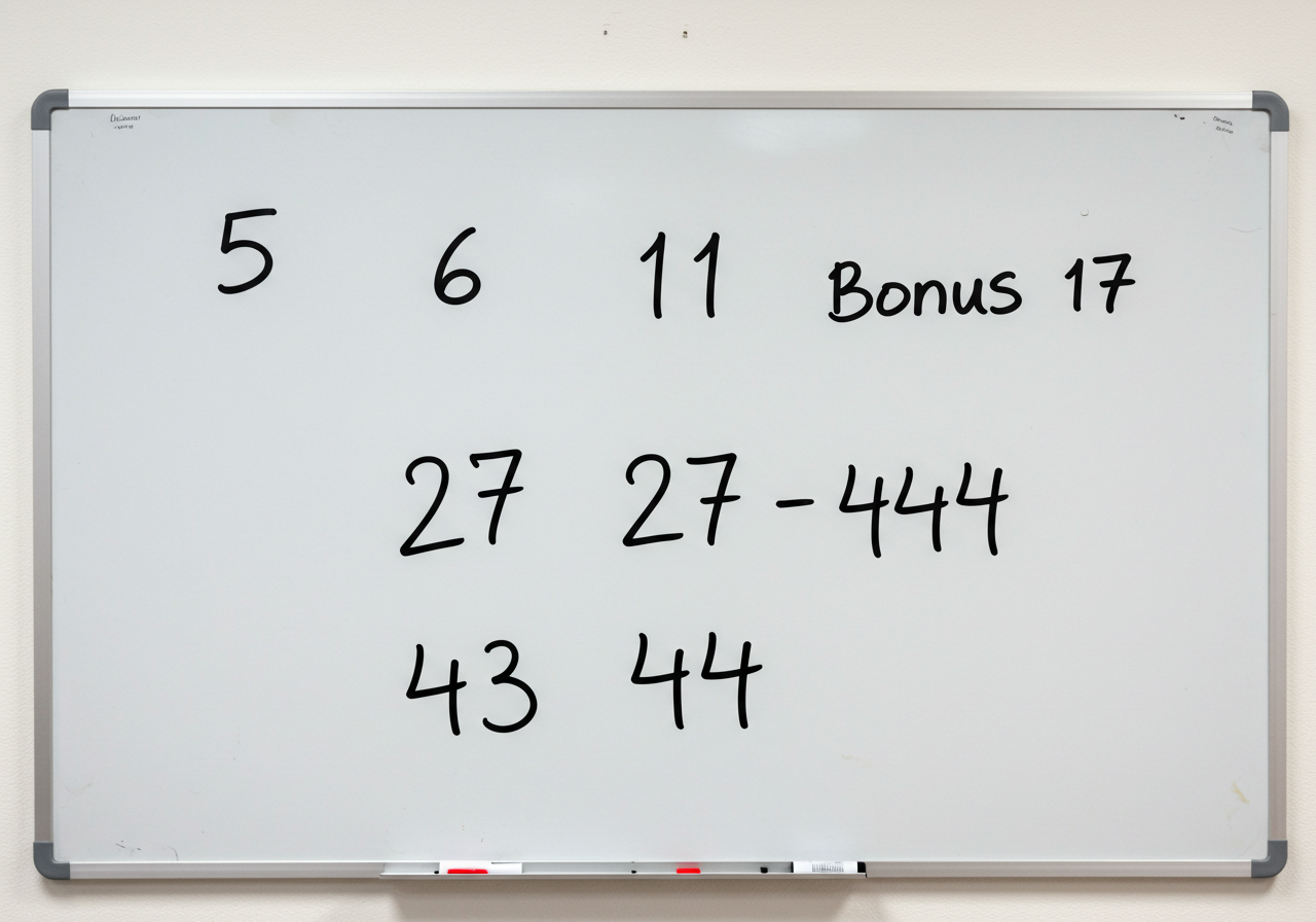 - 당첨번호 : 5, 6, 11, 27, 43, 44