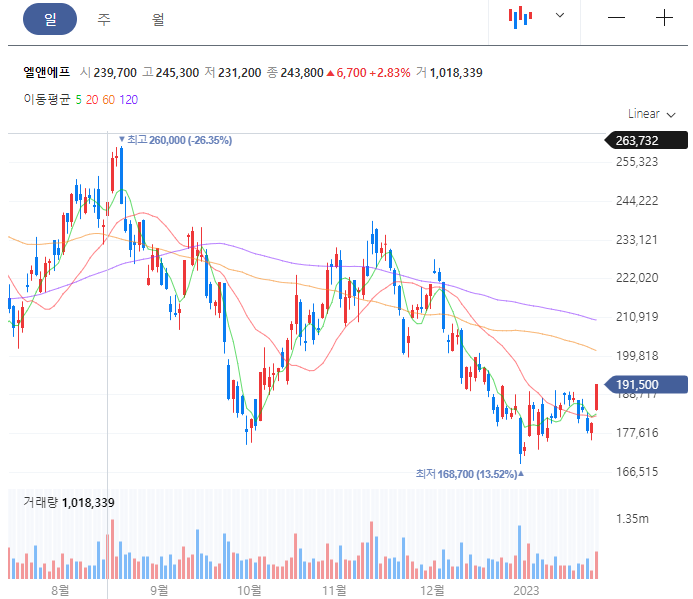 아이러닉 하게도 1월 24일 집계로 코스닥 개인 순매수가 엘앤에프이고 367억 원입니다.