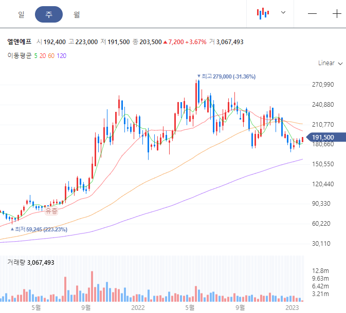 계속된 주식 시장 부진과 2차 전지 업종에 대한 투자 심리 위축이 주가에 영향을 주고 있는 건