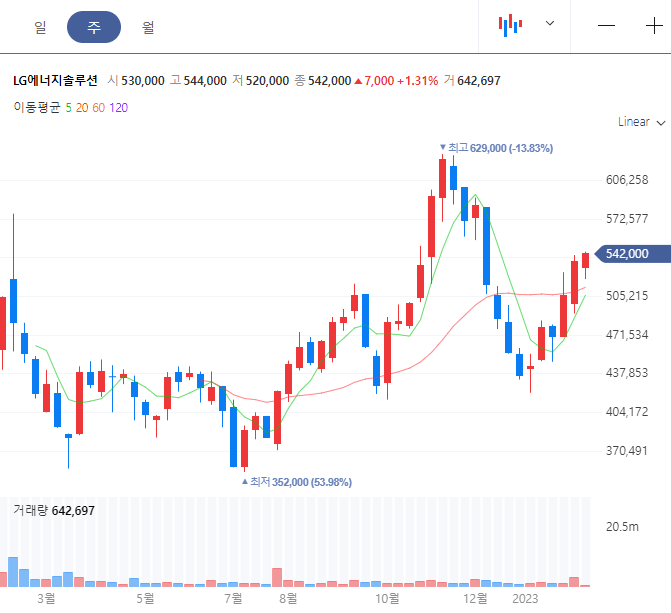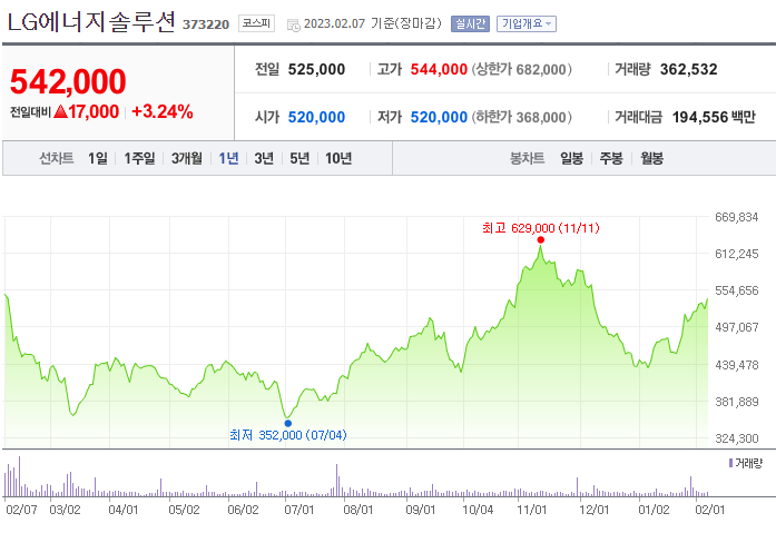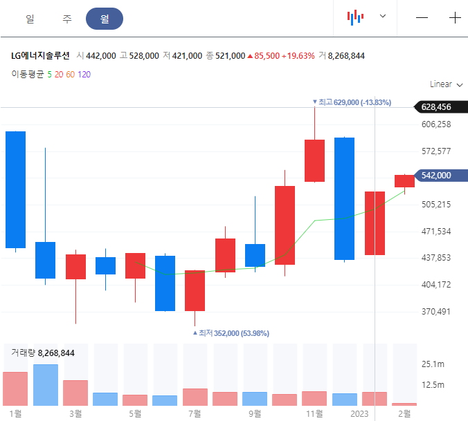 2022년 7월에 최저가 35만 원대에서 , 2022년 11월에 최고가 62만 원을 찍고,