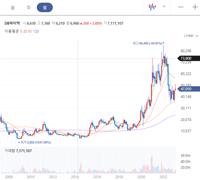 월봉 차트는 60일선, 120일 선을 지켜 내면서, 5일 봉이 이쁘게 그려지며, 60일 선을 탈환하게