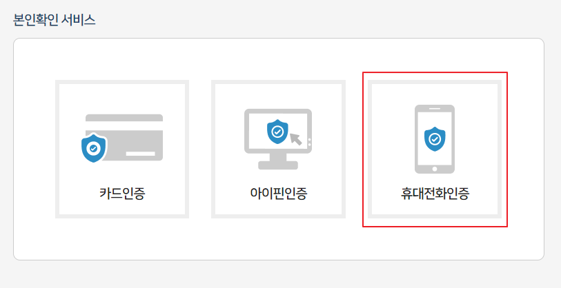 휴대전화인증이 익숙해져서 여기서도 동일하게 휴대전화인증으로 본인 확인을 진행합니다.